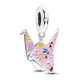 Este charm tiene la forma de una grulla de origami, un símbolo de paz y longevidad. Está decorado con un diseño floral vibrante y colorido. Plata de ley S925 - Colgante con forma de grulla de origami. - Diseño detallado con esmalte. - Apto para pulseras de abalorios.