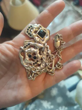 Elegante collar de plata con detalles en negro. Un accesorio con un diseño único que aporta un toque de distinción. - Diseño vintage. - Acabado en plata. - Abalorios negros. - hecho a mano