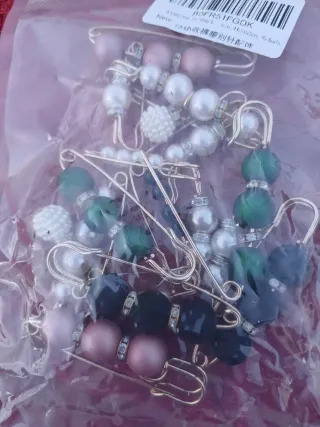 Conjunto de imperdibles decorados con perlas y abalorios, ideales para trajes de flamenca o como accesorios. - 15 unidades incluidas. - Diseño con perlas y abalorios de diferentes tamaños y formas. - Cierre seguro para sujetar telas.
