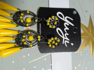 Pendientes largos de estilo flamenco con un diseño elegante. - Detalle de abalorios amarillos. - Colgantes en forma de lágrima. - Cierre de presión. Material: metal Estado: nuevo con etiqueta En unos de los pendientes faltan dos pequeñas bolitas que no afectan a la estética ya que hay que fijarse mucho. Más modelos en mi perfil