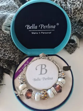 Pulsera de abalorios de la marca Bella Perlina. - Diseño tipo Pandora. - Incluye charms y perlas. - Cierre muy seguro de mosquetón. - Con cadena para poder ajustar el tamaño. Sin estrenar, en su caja. Venta en persona o con envio