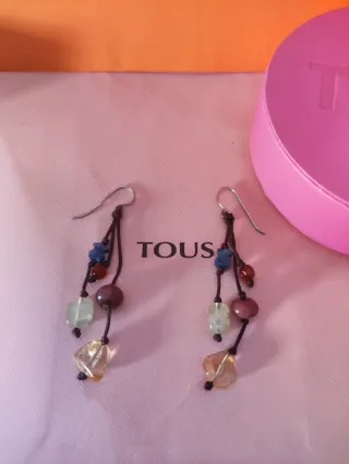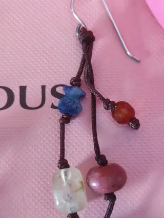 Pendientes de plata,gemas y cordón Tous originale Colección Tíbet Descatalogado - Cuentan con varios abalorios de diferentes formas y tonalidades. - Cierre de anzuelo plateado.