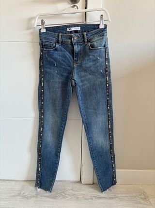 Vaqueros de Zara. Talla 34. Con detalles de abalor
