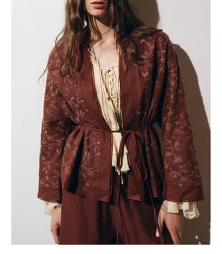 📦 ÚNICAMENTE POR ENVIO 📦 ZARA WOMAN COLLECTION 🤎 Kimono manga larga 🤎 con aplicación de abalorios y bordados. 🤎 Cinturón fino largo para hacer lazadas. 🤎 Contiene lino 🤎 Color burdeos claro / mezcla marrón ZARA TALLA L Medidas : ⭐️ sisa sisa 65 cm ⭐️ largo 68 cm Composición : exterior cuerpo 55% LINO 45% viscosa BORDADOS 100% poliéster. FORRO 55% poliéster 45% poliamida Hago envíos a través de la aplicación ( Wallapop Envíos ) ✅ CORREOS ✅ INPOST