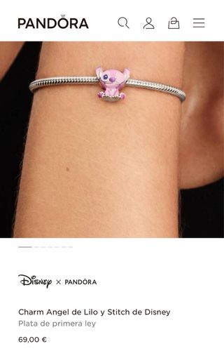 Abalorio de la marca Pandora con diseño de Stitch en color rosa y morado. - Diseño de personaje. - Detalles en pedrería. Precio negociable nuevo sin estrenar