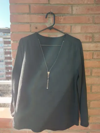 Camiseta negra - Cremallera frontal dorada. - Detalle de abalorios en el tirador de la cremallera. - Manga larga.