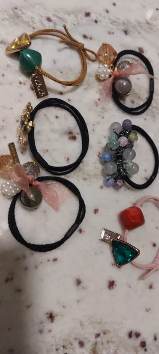 Conjunto de seis coleteros nuevos. - Diseños variados con abalorios y detalles. - Perfectos para complementar cualquier peinado. - Ideales para uso diario o para ocasiones especiales. Nuevos sin uso. NO HAGO ENVIOS.