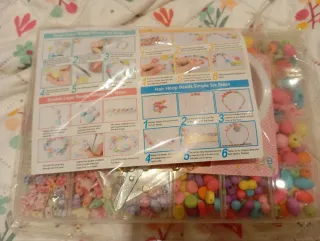 Set de abalorios para manualidades y bisutería. - Variedad de formas y tamaños. - Ideal para crear pulseras, collares y otros accesorios. - Contiene cuerda y tijeras. Sin abrir.
