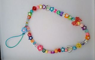 Colgante divertido y colorido para el móvil, hecho con una variedad de abalorios. - Diseño con corazones, estrellas y flores. - Incluye detalles como dados y ojos. - Cuentas de diferentes formas y tamaños. 2 euros cada uno...hechos por mi