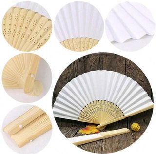 Se venden 50 abanicos de mano de color blanco. Son ideales para bodas, fiestas o cualquier evento especial. Están nuevos y sin usar. 50 abanicos 50€ - Vienen en un paquete. - Son de madera. - Perfectos para regalar.