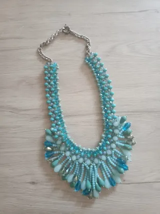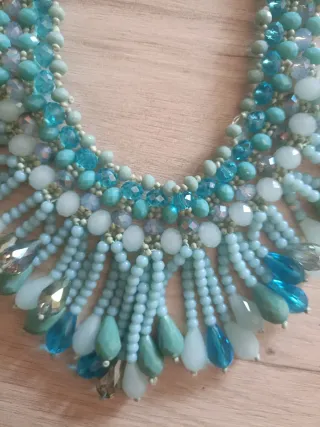 Collar llamativo con cuentas azules y turquesas