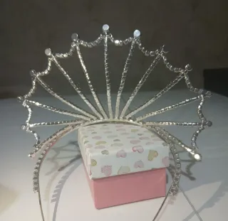 Elegante corona plateada adornada con brillantes pedrería. Perfecta para ocasiones especiales. - Diseño en forma de abanico. - Detalles de pedrería incrustada. -