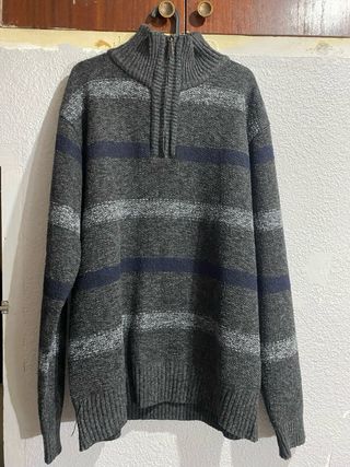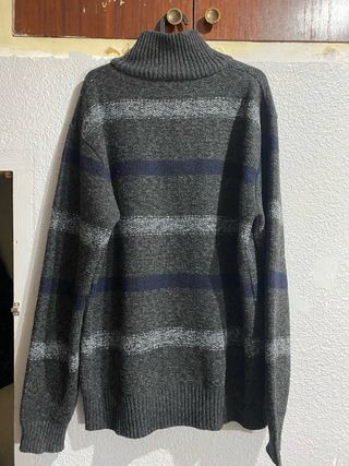 Suéter de punto para hombre con un diseño de rayas clásico y cuello alto. - Cuello alto acanalado. - Diseño de rayas horizontales. - Puños y bajo acanalados.