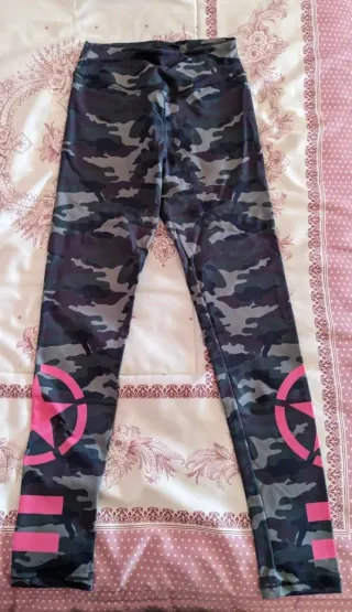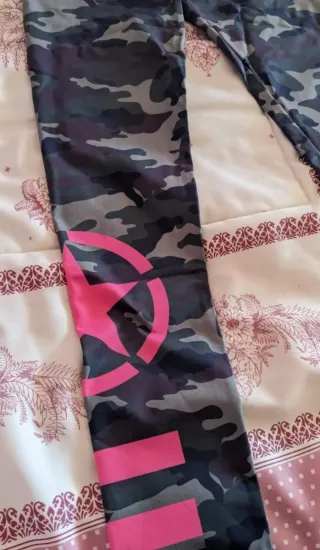 Leggings de Shein con estampado de camuflaje y detalles en rosa. - Diseño de camuflaje. - Estampado de círculo y barras en rosa en los tobillos. Precio negociable