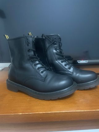 Botines de estilo moderno con detalles prácticos. - Cierre principal con cordones. - Cremallera lateral para facilitar el acceso. - Tiradores en la parte trasera. - Suela gruesa y resistente.