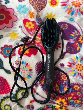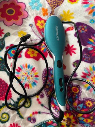 Cepillo alisador de la marca Rowenta en color teal y plata. Diseñado para facilitar el peinado. - Mango ergonómico. - Cable de alimentación. - Botones de control. No tengo la CAJA.