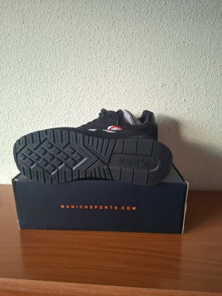 Zapatillas deportivas Munich en color negro con detalles en blanco. Perfectas para el día a día. - Diseño deportivo. - Cierre con cordones. - Suela de goma. PRECIO NO NEGOCIABLE