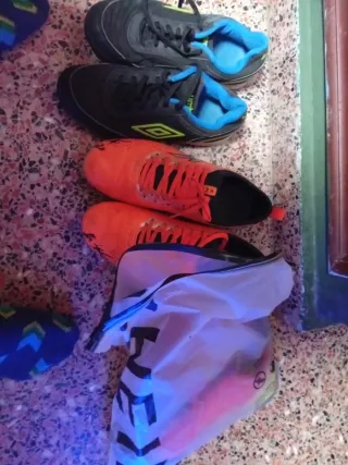 Zapatos de fútbol sala Umbro. - Color negro con detalles naranjas. - Diseño deportivo. 3 euros cada par el pack 8€8
