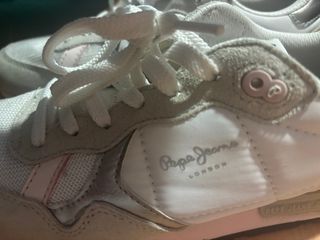 Zapatillas de la marca Pepe Jeans en tonos blanco y rosa. Un diseño moderno y cómodo para el día a día. - Combinación de materiales en el exterior. - Cierre con cordones. - Detalle de logo en la lengüeta.