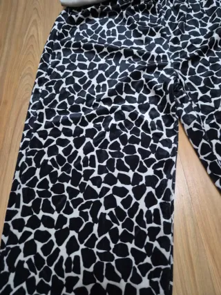 Conjunto de pantalón y blusa con un diseño llamativo. - Pantalón con estampado de manchas. - Blusa de color beige.el pantalon es de un terciopelo suave se vende las tres piezas juntas