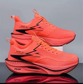 Zapatillas deportivas de estilo moderno y llamativo. - Diseño con detalles en negro y blanco. - Suela gruesa y contorneada. - Detalle de texto SPORT en el lateral. - Marca FLAM visible en la suela.