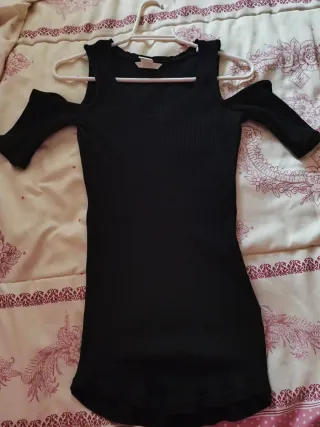 Camiseta de manga corta con diseño de hombros descubiertos. - Tejido acanalado. - Cuello redondo. - La talla equivale a una S. La tela es muy elástica
