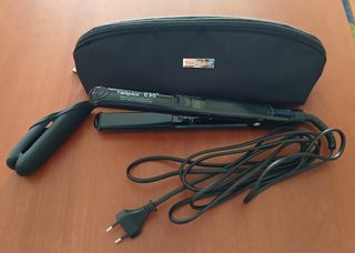 Plancha de pelo Termix con regulador de temperatura inteligente que abarca de los 130º a los 230ºC y permite trabajar con todo tipo de cabellos. Placas basculantes de 27mm y 100% cerámica y turmalina para asegurar un mejor deslizamiento y potenciar el brillo del cabello. Nanotecnología y regulación de iones. Incorpora Nano óxido de Titanio (Nano Ti O2) y Nano Plata (Ano Ag) en sus placas, componentes que ayudan a combatir el encrespamiento. Dimensiones: Alto 3,5 cm x Largo 29 cm x Ancho 2,8 cm Cable giratorio de 3 metros y modo de apagado automático a los 60 minutos en desuso. PRECIO: 60€ (neceser térmico incluido)