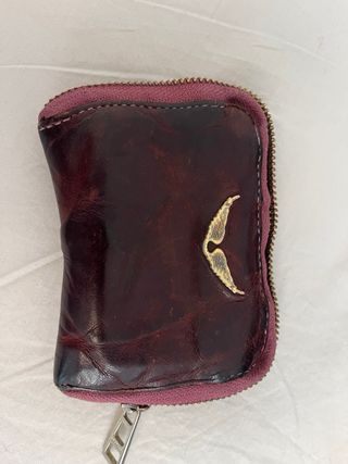 cartera de Zadig and Voltaire. Tiene algunos años de uso pero esta fenomenal y abarca un monton de cosas y se gestiona genial como cartera. Es muy unica y original ya que se vendieron muy pocas unidades de este modelo. es de piel 100% y tiene un efecto desgastado.