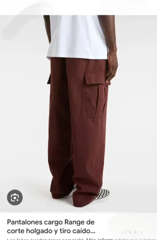 Pantalones cargo de corte baggy y tapered con cintura elástica. -Color Burdeos - Bolsillos cargo en los laterales. - Etiqueta de la marca en el bolsillo. .Cintura 46-5-47 cm y es elástico, abarca mas tamaño de cintura si lo necesitas El tallaje que pone Wallapop no es correcto, es mas una talla tirando a 44