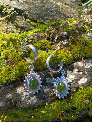 Pendientes únicos con musgo natural encapsulado en un diseño ovalado. 🍂Pendientes artesanales con musgo natural encapsulado en resina. 🍂 Hecho a mano con mucho cariño. Pieza única. 🍂 Cierre de aro de acero inoxidable plateado.