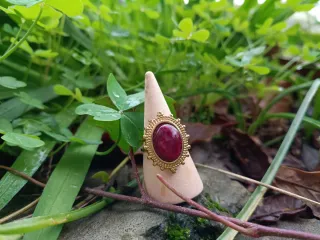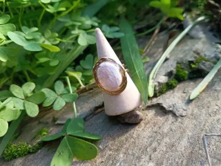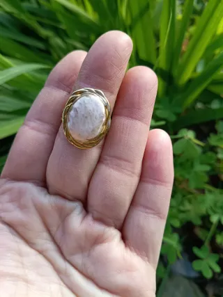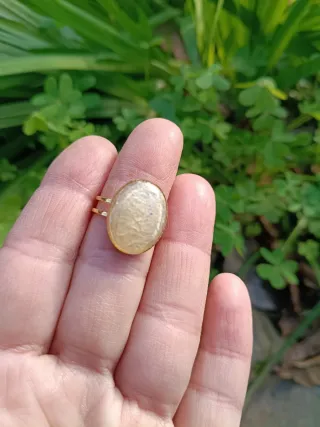 Anillo con un diseño único que encapsula musgo natural. Su tamaño es ajustable para adaptarse cómodamente. - Encapsulado de musgo real. - Montura con acabado dorado de acero inoxidable.