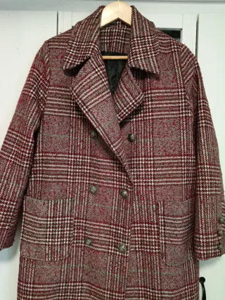Abrigo de cuadros con un diseño moderno y elegante. - Etiqueta interior de marca y composición cortadas. Pongo comerco local pues no recuerdo exactamente de dónde es 😌 - Talla M. Medidas en últimas fotografías ✨ - Cierre cruzado con botones estilo marinero - Bolsillos cuadrados delanteros.