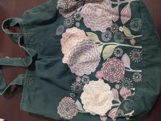 Bolso con un diseño llamativo y moderno. - Estampado con letras y símbolos. - Detalles en azul marino. - Cierre con cremallera. - Puede llevarse tanto colgado al hombro como de mano. - Nuevo. Sin uso.