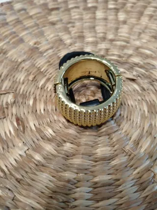 Elegante pulsera de la marca Swarovski, adornada con cristales que combinan diferentes tonos verdes y dorados, creando un diseño brillante y sofisticado. Apenas se ha usado.
