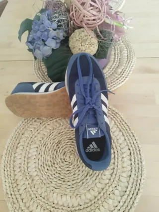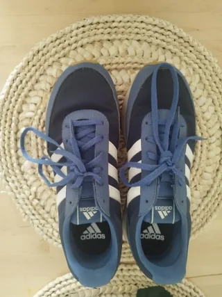 Zapatillas Adidas en color azul y blanco, con suela de goma. - Usadas solo dos veces. - Talla 39.