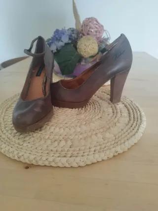 Elegantes zapatos de tacón de la marca Tommy Hilfiger. - Color marrón. - Talla 40. - Cierre con pulsera al tobillo. - Detalle de picado en el borde.