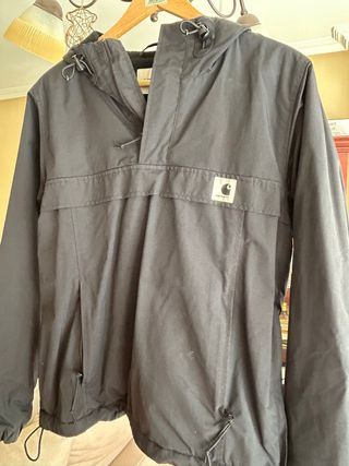 Abrigo tipo anorak de la marca Carhartt en color negro. Cuenta con capucha y bolsillo canguro. - Cierre de cremallera parcial. - Cordones ajustables en capucha y bajo. - Bolsillos laterales con cremallera.