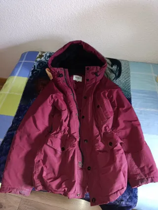 Parka Carhartt de color granate en PERFECTO ESTADO. Talla grande mido 1,79 y me queda perfecta. Costó 200€ en 2022. Dispongo del pelo de la capucha si también interesa. - Cierre de cremallera y botones a presión. - Cintura ajustable con cordón. - Puños con ajuste. Negociable
