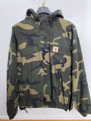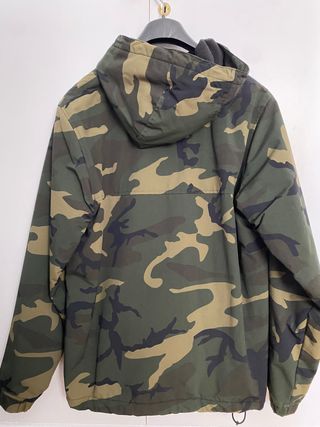Chaqueta con estampado de camuflaje para hombre. - Producto Carhartt original. - Modelo descatalogado. - Forro polar de invierno. - Abertura lateral. - Bolsillos con cremallera. - Diseño tipo anorak. - Bolsillo frontal. - Capucha ajustable. - Cordón en el bajo. - Modelo Nimbus. - HAGO ENVÍOS Chaqueta usada pero en buen estado, sin ningún desperfecto. Es original, comprada en tienda de productos oficiales Carhartt.