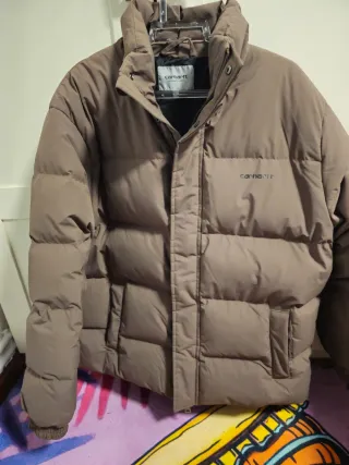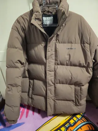 Chaqueta acolchada Carhartt en tonos beige y marrón. Diseño moderno y cálido. - Cierre de cremallera. - Bolsillos laterales. - Cuello alto. Talla L Nunca usado