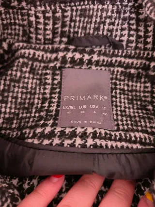 Abrigo de traje con un diseño de rayas verticales. - Color negro. - Diseño de rayas. La talla es aproximadamente XL o L, no estoy del todo seguro, no lo pone. Pero es holgada.