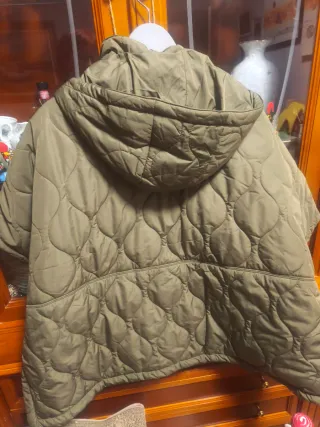 Abrigo tipo capa de Zara, perfecto para añadir un toque de estilo a tu look. - Diseño acolchado. - Cierre de cremallera. - Capucha con cordones. - Bolsillos laterales.