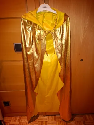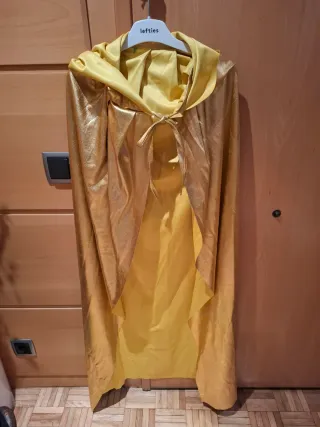 Capa larga con capucha en color dorado brillante y forro interior amarillo. Unos 130cm de largo. Tengo 3 iguales. Están nuevas.