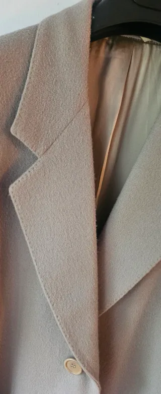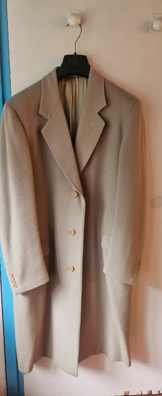 Elegante abrigo de la marca Canali en color beige/hueso en lana virgen. En estado perfecto. Hecho en Italia. - Talla 48/50. - Diseño clásico con solapas. - Cierre de botones. - Puños con detalle de botones.