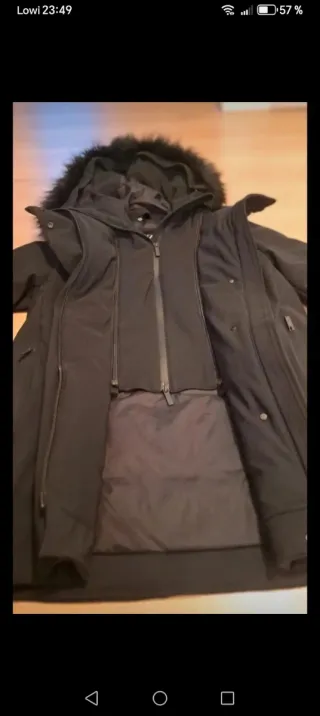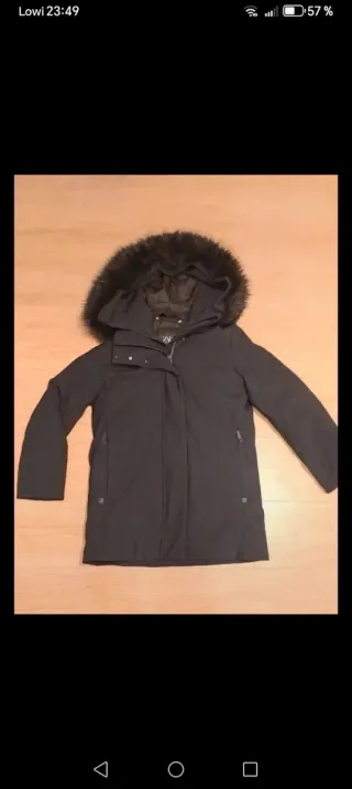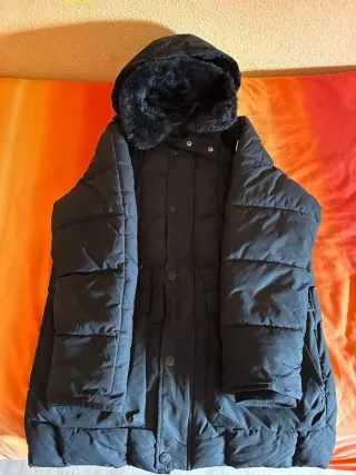 Abrigo de la marca Zara, con doble capa y diseño impermeable. Perfecto para protegerte del clima. - Capucha con pelo. - Cierre de cremallera. - Bolsillos laterales. Precio original 150 euros