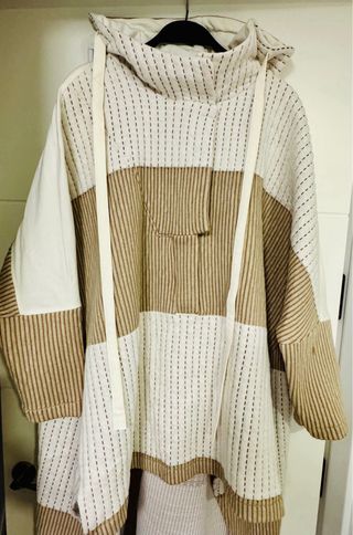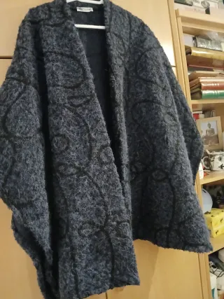 Preciosa capa o poncho de Zara, con un diseño original y moderno. Nuevo y con etiqueta. - Tejido suave y confortable. - Detalle de costuras visibles. - Capucha integrada. - Cordones para ajustar. - Bolsillo frontal.