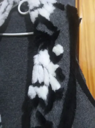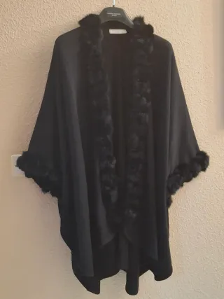 Elegante capa negra con detalles de pelo natural.,no sintetico La capa es un punto muy gustoso - Diseño abierto. - Adorno de pelo en el cuello y puños. Poquisimo uso, Dimensiones en fotos. Para cualquier ocasion.