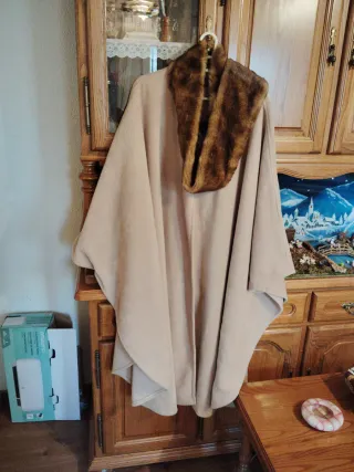 Elegante capa de Ralph Lauren con un lujoso cuello de piel. Mira mi perfil , tengo muchas más cosas - Color beige y marrón. - Talla XL/42/14