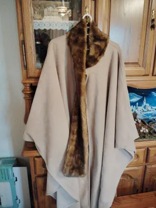 Elegante capa de pelo sintético con un diseño muy bonito y un cierre de botón decorativo. - Material: Pelo sintético. - Cierre: Botón decorativo.