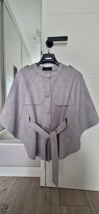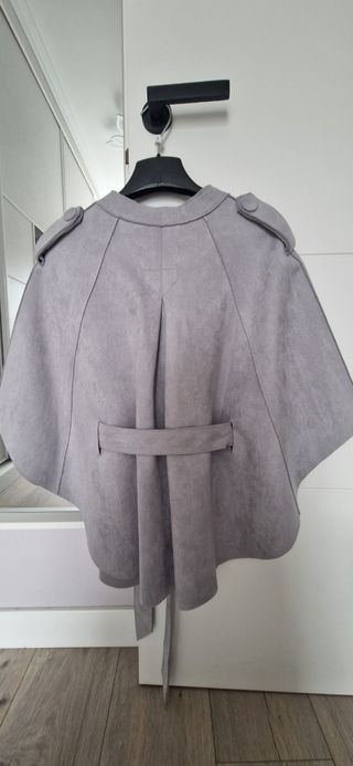 Elegante capa de ante en color gris. Un diseño versátil y moderno. - Cierre con botones. - Cinturón a juego. - Diseño tipo capa.